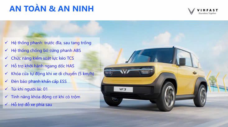 Vượt lên trên một phương tiện di chuyển thông thường, VinFast VF 3 là biểu tượng mới mang tính cách mạng trong cuộc sống đô thị. Với thiết kế hiện đại, hiệu suất vận hành linh hoạt, tính năng an toàn tiên tiến, cùng chi phí vận hành siêu rẻ, VF 3 sẽ mở ra một cách tiếp cận hoàn toàn mới trong việc lựa chọn phương tiện di chuyển hàng ngày, mang lại sự thuận tiện, dễ dàng và đặc biệt thoải mái cho tất cả mọi người.