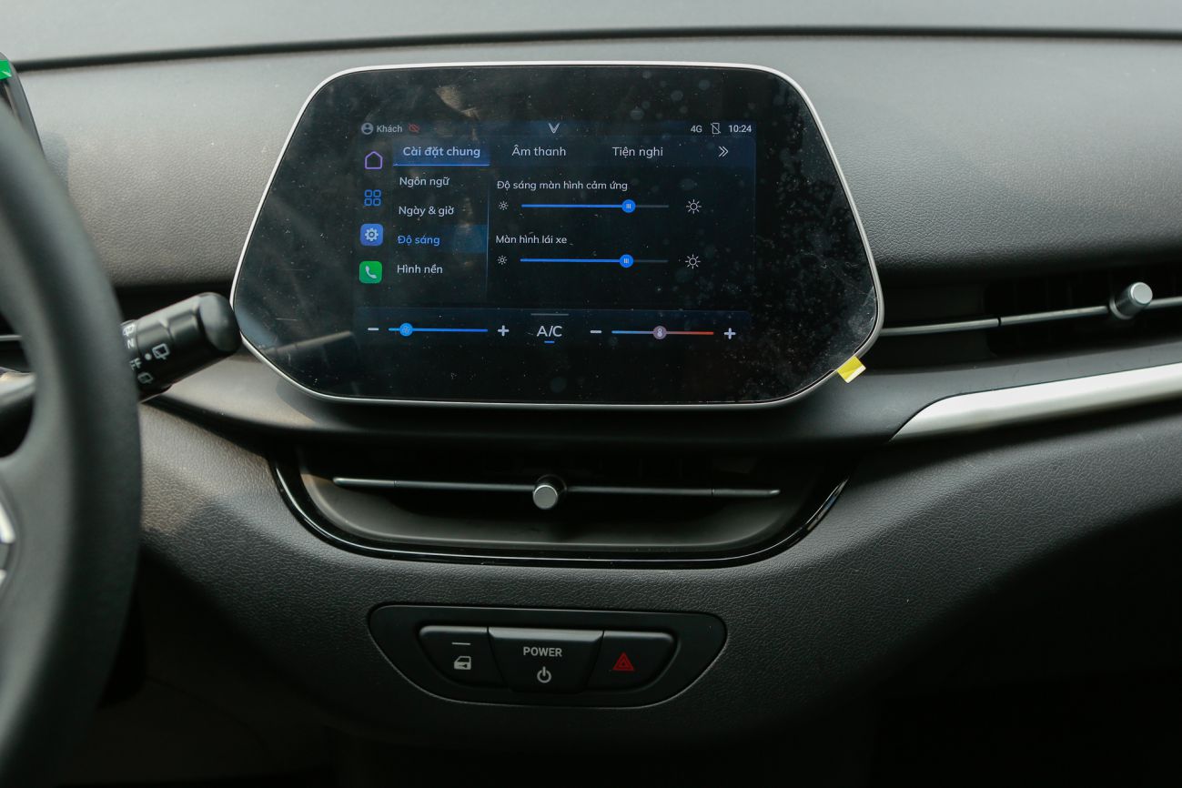 Phía dưới màn hình trung tâm là cần số và phanh tay điện tử được tích hợp dạng lẫy gạt. Các nút chức năng xoay điều khiển hệ thống giải trí, bấm đèn khẩn cấp, hạ kính bố trí ngay cạnh khay đựng cốc giống “đàn anh” VF8 và VF9.