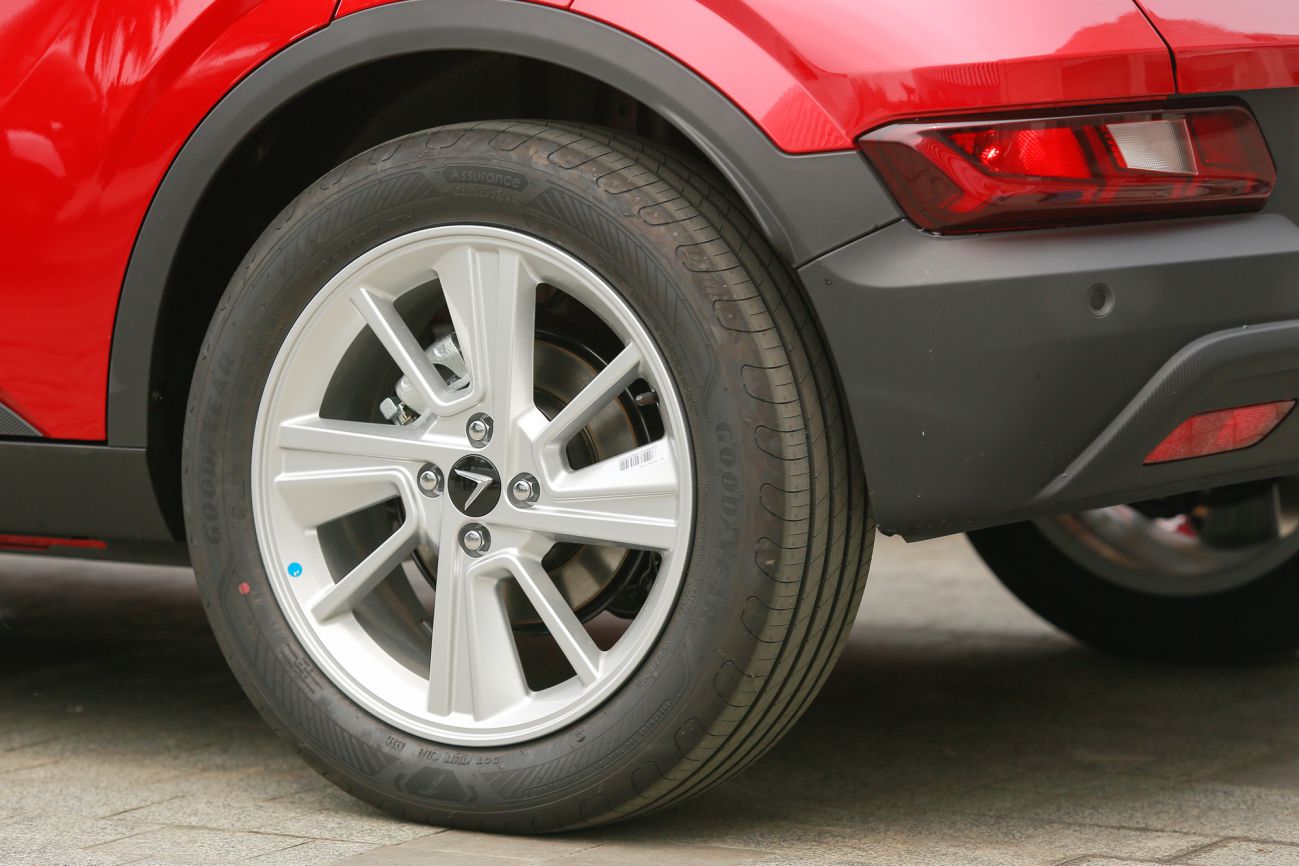 Bộ la-zăng kích thước 17 inch, tạo hình 5 chấu lớn cũng là điểm rất đáng chú ý tại khu vực thân xe VinFast VF5. Đi kèm với đó là bộ lốp Pirelli P-Zero kích thước 225/40R17.