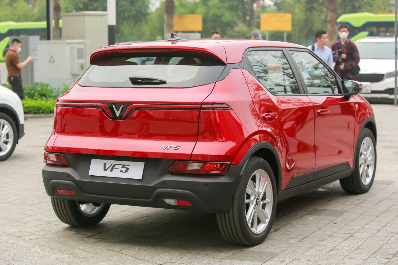 Cụm đèn xi-nhan, đèn lùi và đèn sau màu đỏ đặt thấp xuống dưới. Cánh gió, ăng-ten vây cá cùng màu nóc xe. Cản sau thiết kế khá hầm hố với màu đen bóng, càng nhấn mạnh vẻ khỏe khoắn trên VF5