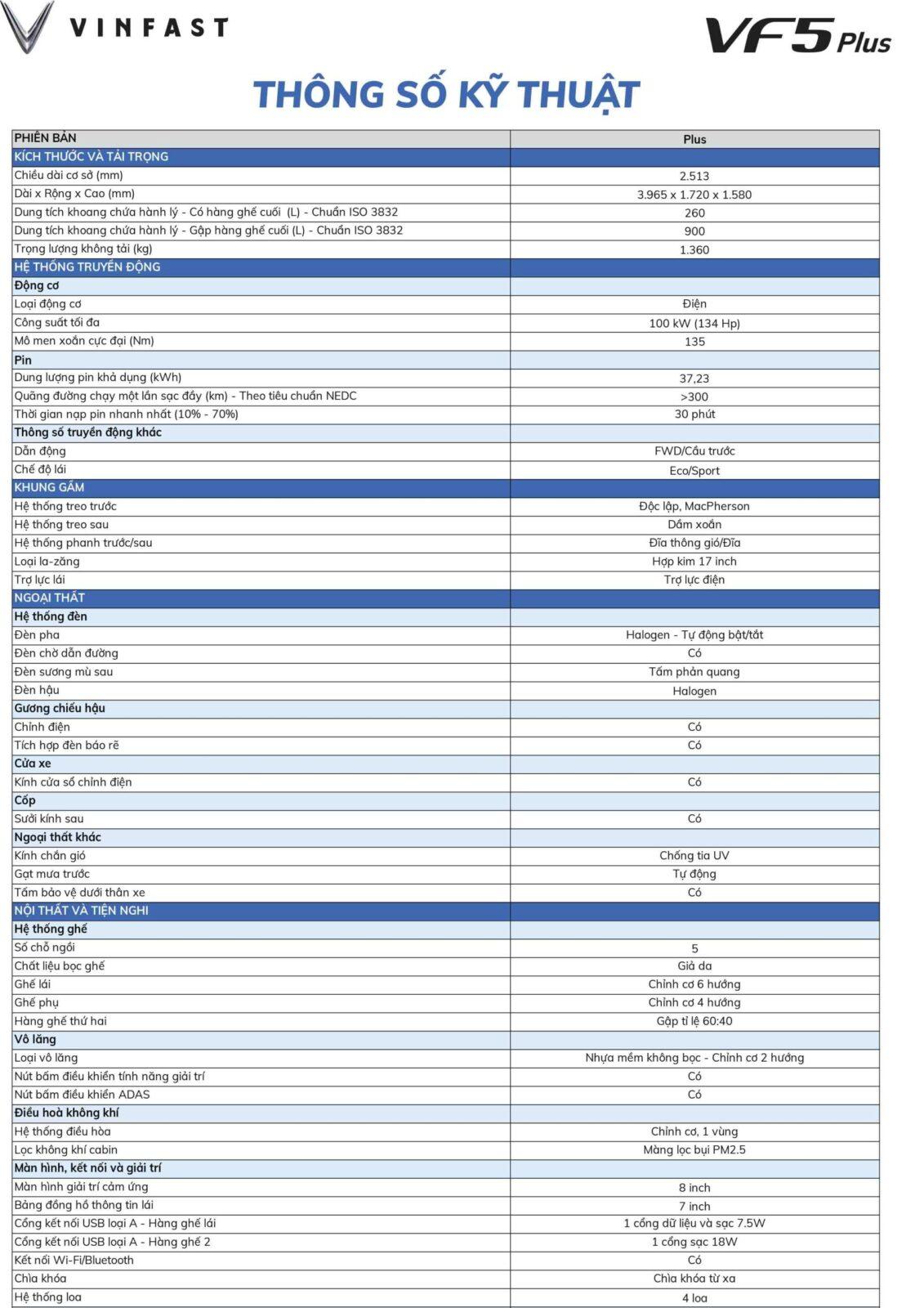Thông Số Vinfast VF5